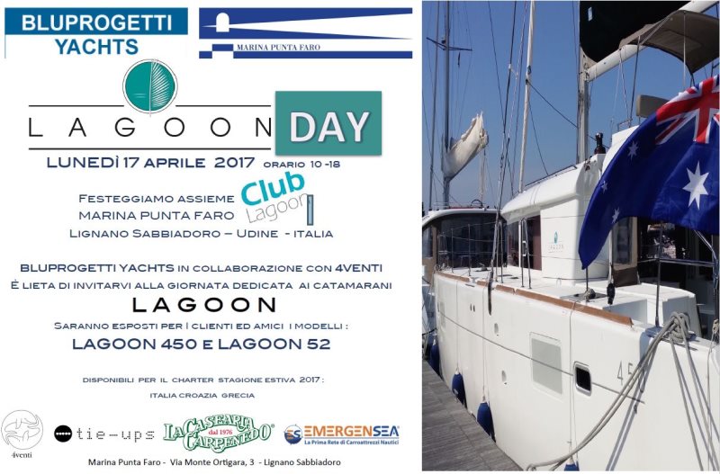 Emergensea è partner di Bluprogetti Yacht, alla presentazione del LAGOON 450 e LAGOON 52 a Marina Punta Faro il 17 aprile. Orario: 10.00-18.00 - Ingresso gratuito